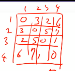 초기값은 D[0][i][j]은 edge weight이다. 이차원 배열 w[i][j]