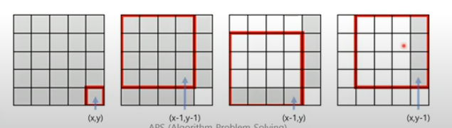 비어있는 칸이 있으면 오른쪽 아래로 하는 가장 큰 정사각형을 찾는다. 3개