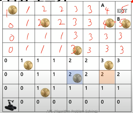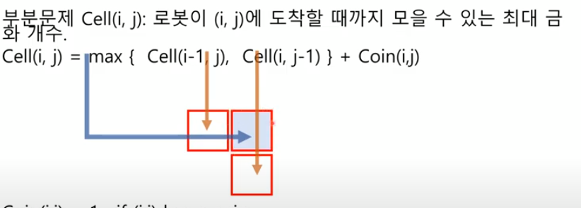 둘 중에 큰 값을 골라서 (i,j)의 코인을 더한다.