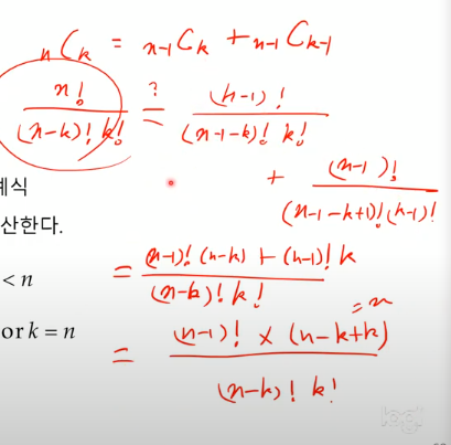 -> 1을 포함 -> n-1개에서 k-1개 고르기