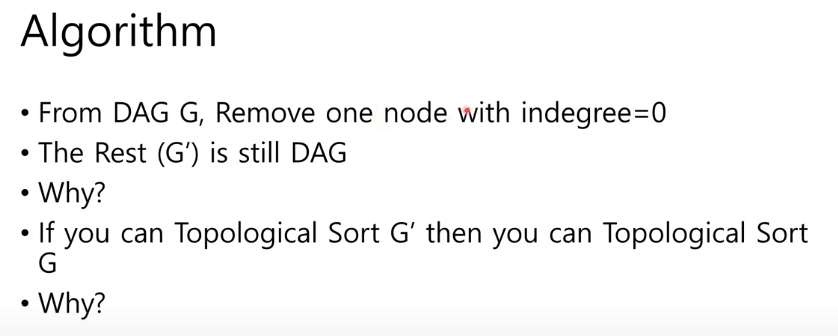 G'을 topological sort 할 수있으면 G를 topological sort 할 수있다 (재귀의 step부분)