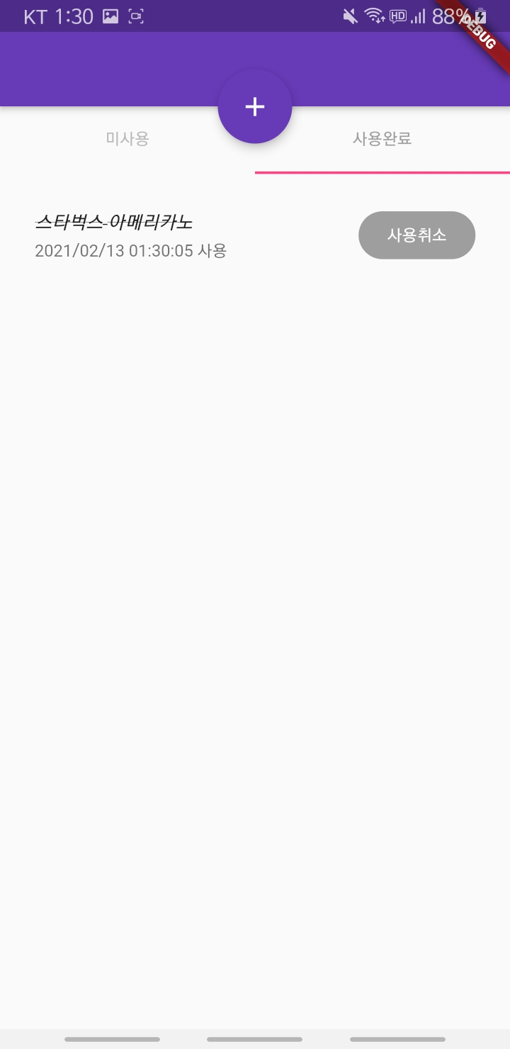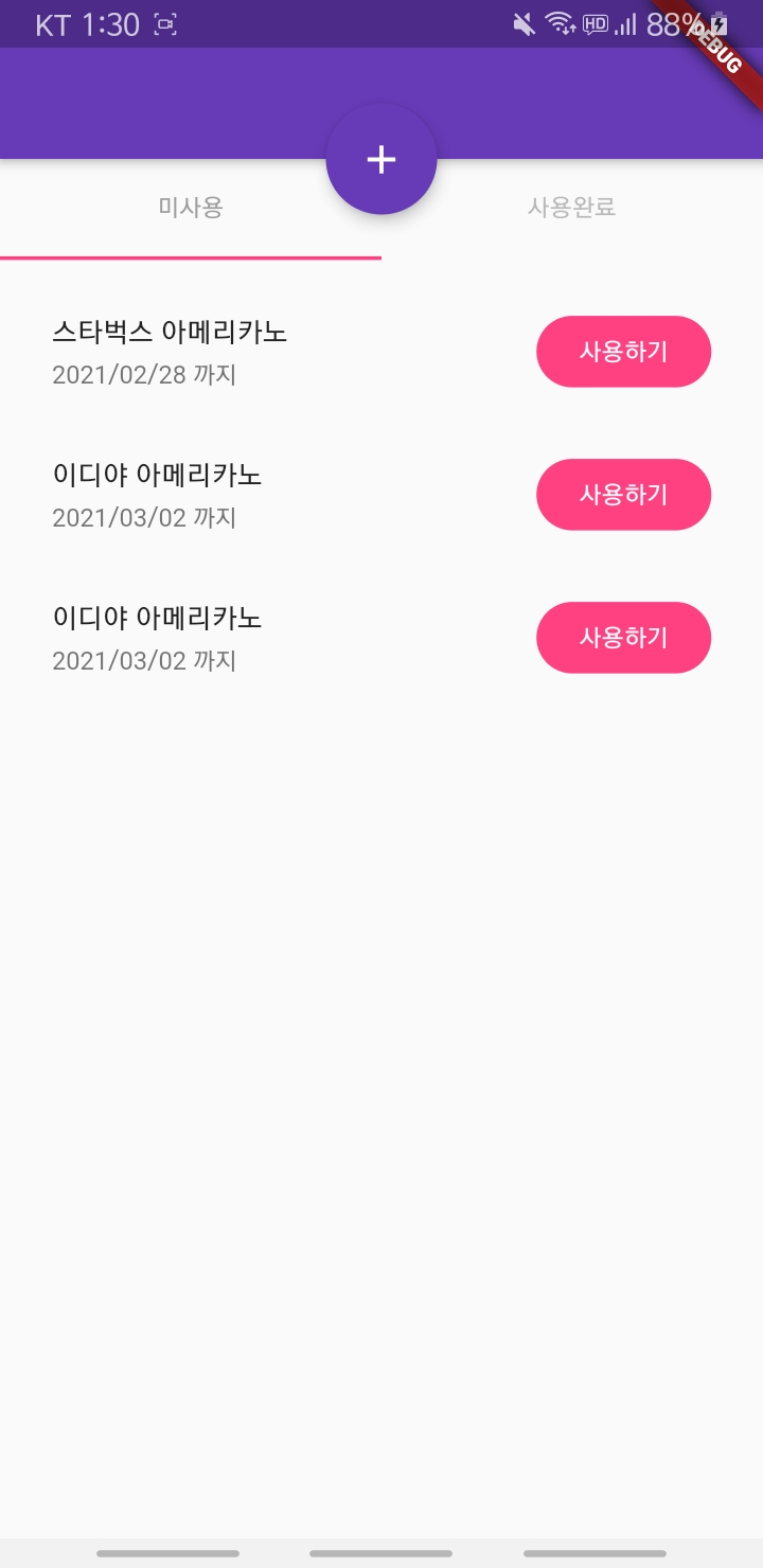 사용 / 미사용 목록을 탭으로 나누어 표시했다.
