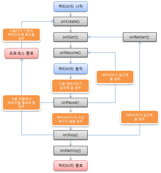 복잡한 앱에서는 액티비티가 종료될 때 메모리에서 해제하는 객체가 있을 수 있으므로 onDestory()를 오버라이드한다.