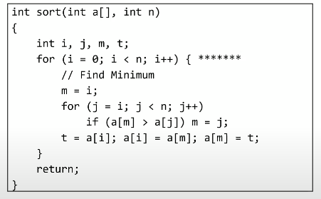a[k], ..., a[n-1] 중 최소값을 a[k]로 옮겼음!!!!!!!