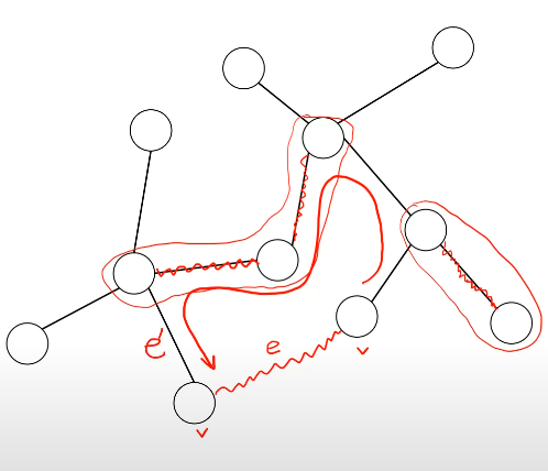 1. e'가 같은 덩어리를 연결했다면 정답안에 사이클이 있다는 뜻