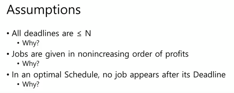 i+1놓은 자리에 이미 뭐(p)가 있다면 그 p는 i+1보다 profit이 좋을 수 없다. (profit이 높은 순대로 나오니까)